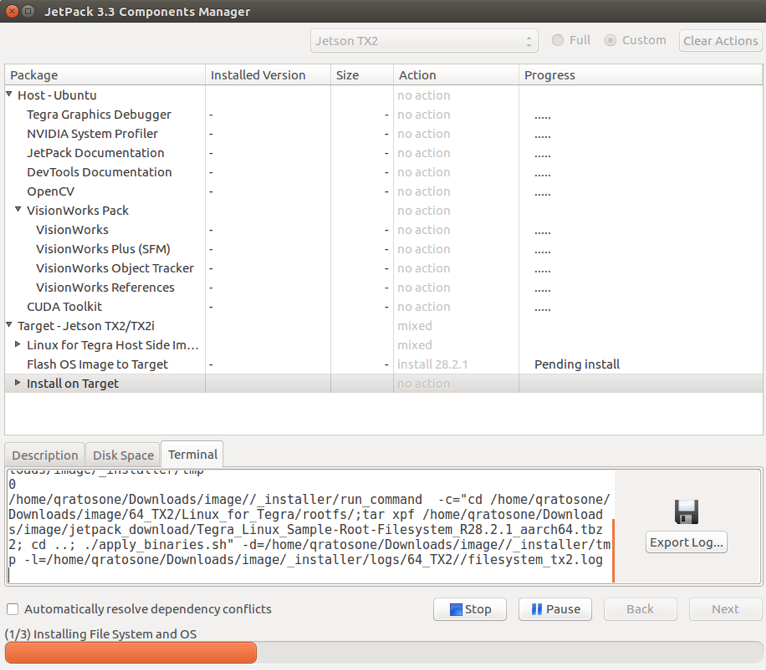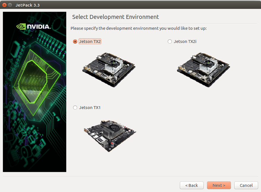 Choose the desired package. Please note only install the Linux for TX2 while leaving the other options as "no action":