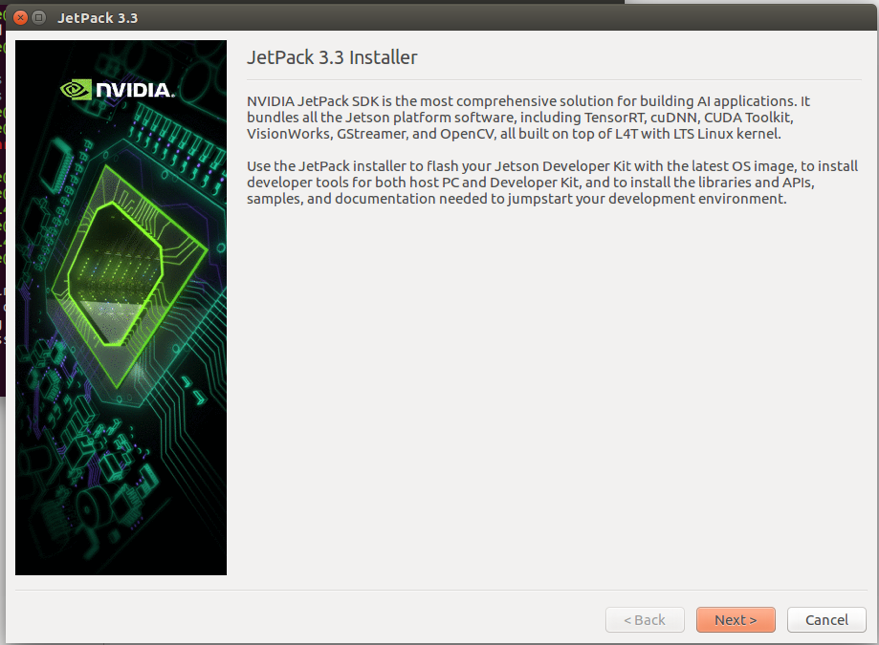 Download and run JetPack 3.3, as shown below: